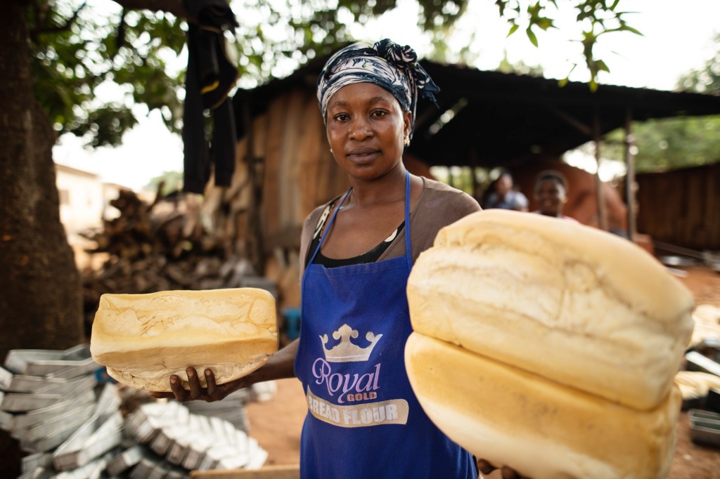 Linda Nimo is a dedicated bread maker from Techiman, Jomoro, Ghana. Through her business, she not only provides freshly baked bread to her community but also creates employment opportunities for her family and neighbors. Her work goes beyond baking—it’s about supporting those around her, fostering economic empowerment, and strengthening local livelihoods.